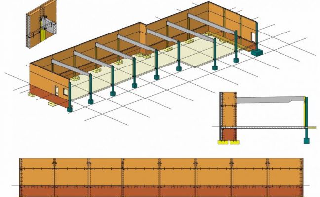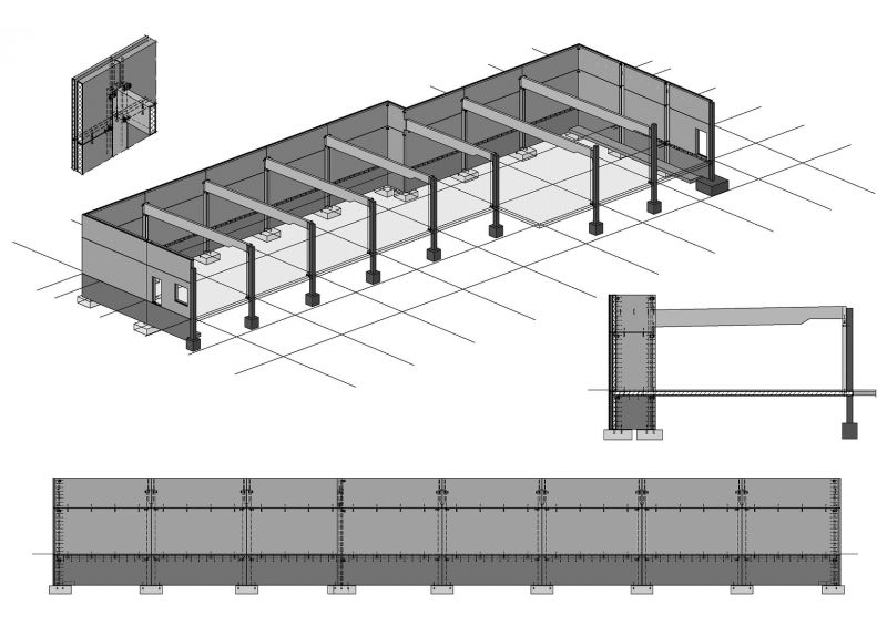 Stützen, Wandelemente, Sandwich-Fassadenplatten, Binder